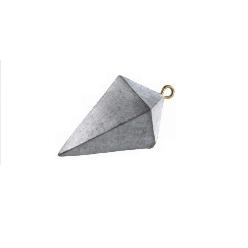 Piramide lood met dak. Goed te gebruiken op het strand als het te hard stroomt om met normaal lood te vissen.